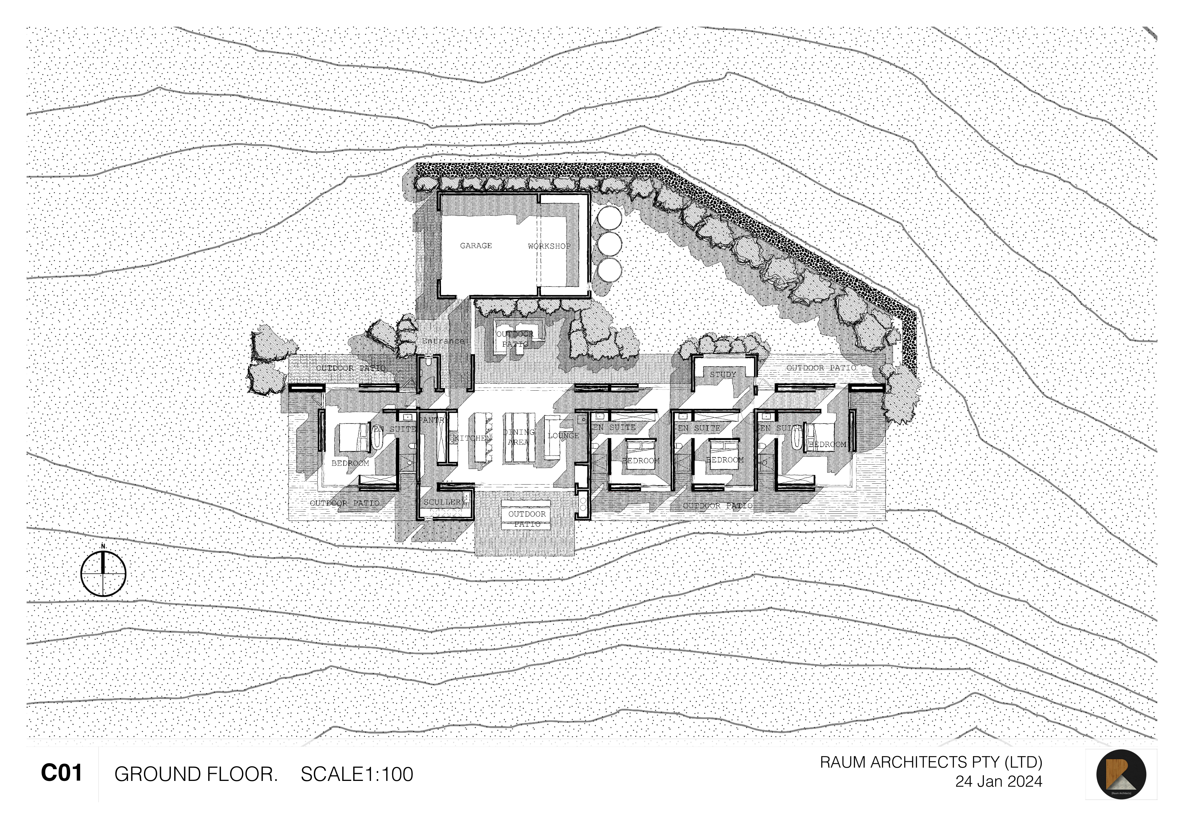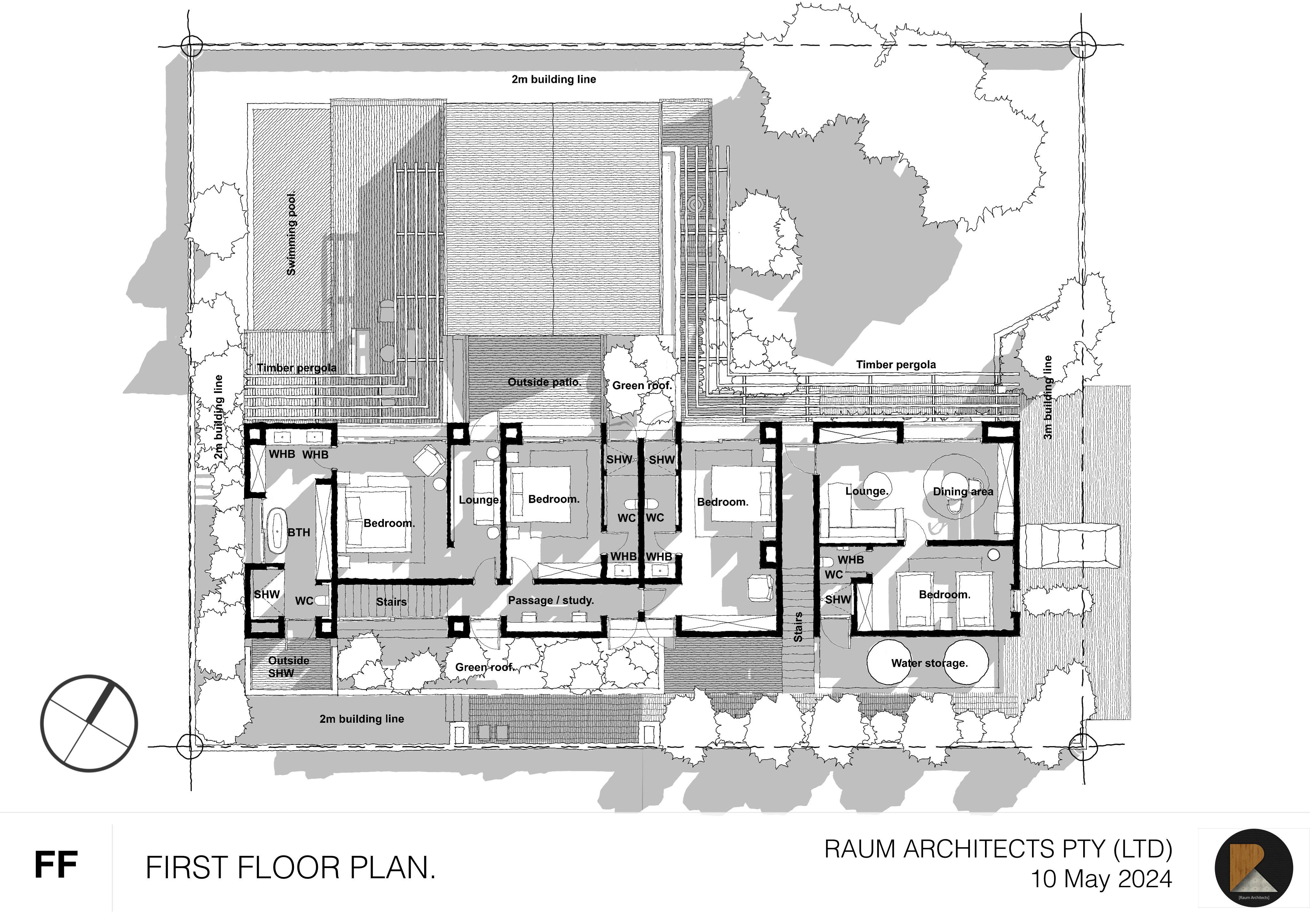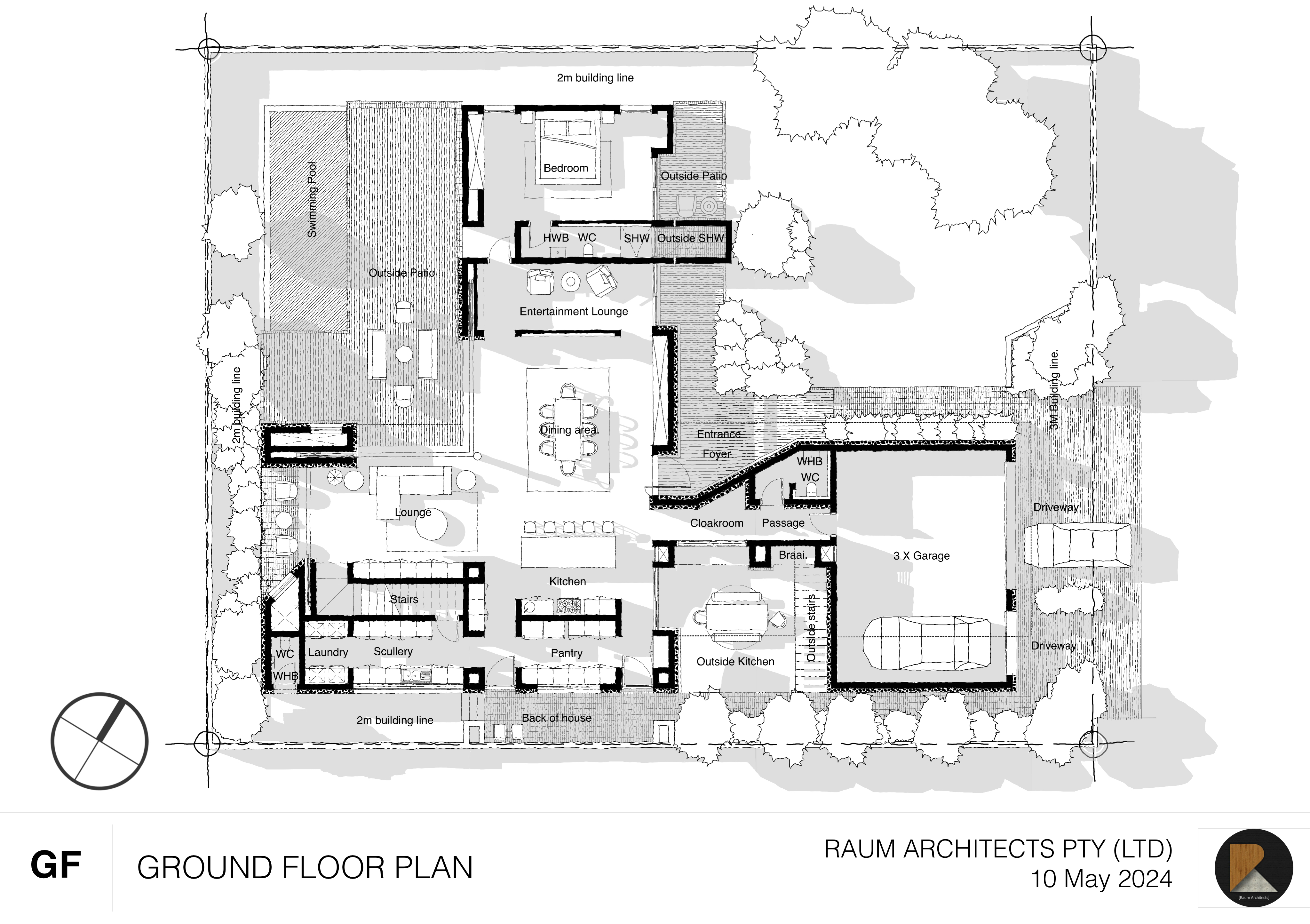 Drawing inspiration from the local context, this design aims at providing its owner with a luxurious and relaxing atmosphere. Situated in a secure estate, the open living spaces extend seamlessly from the house outward. The bedrooms are placed on the first floor for greater privacy and are strategically set back and oriented to optimize northern sunlight, enhancing warmth and natural light throughout the day. The living areas are thoughtfully located on the ground floor to promote an open, social, and interactive household